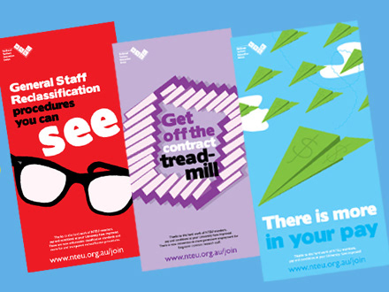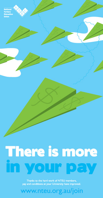 A series of posters that were aimed at promoting bargaining wins after collective agreements had been finalised. Rolled out to all universities in Australia.