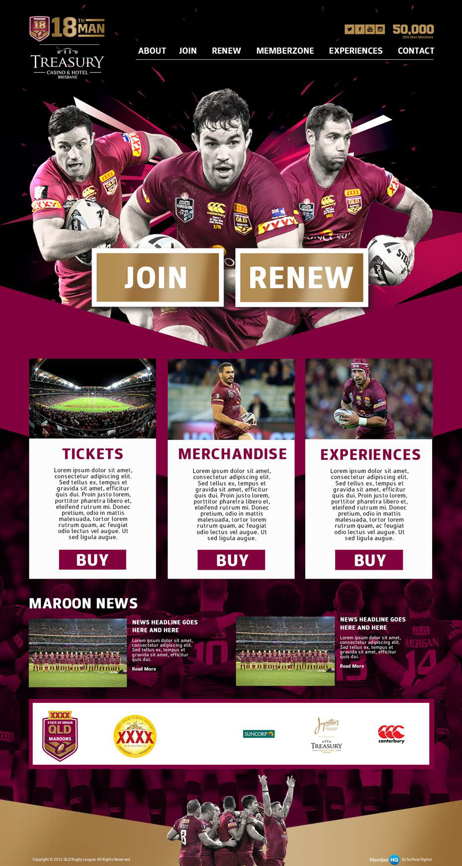 The 18th Man membership site for the Queensland Rugby League. The QRL wanted to make their State of Origin ticket sales a more communal experience and emphasise the special nature of the games.