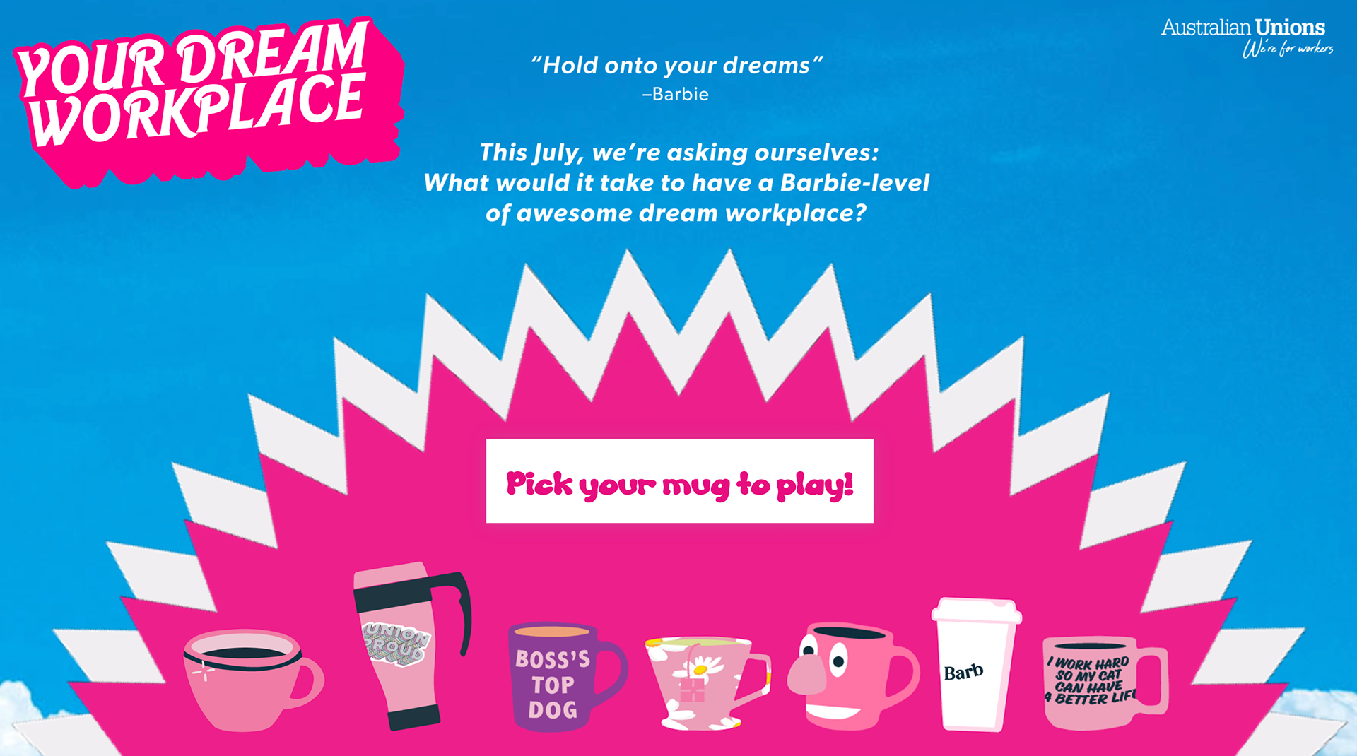 Pitch, design, and build of an online game for Barbie themed game aimed at under 25 audience. Play here: https://dream.australianunions.org.au/